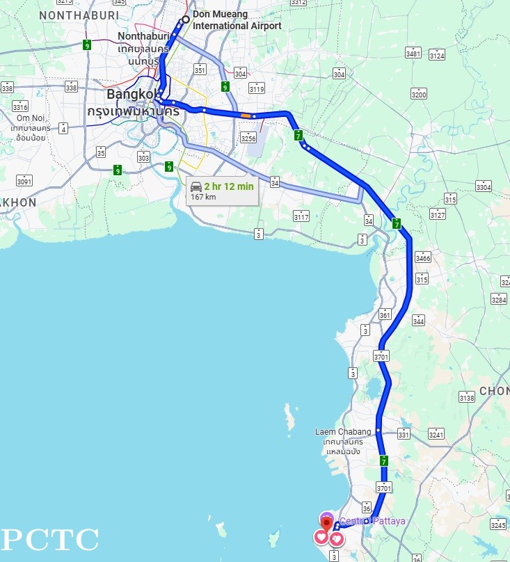 ✅ Distance: Approx. 161 km from Pattaya Hotel to Don Mueang Airport